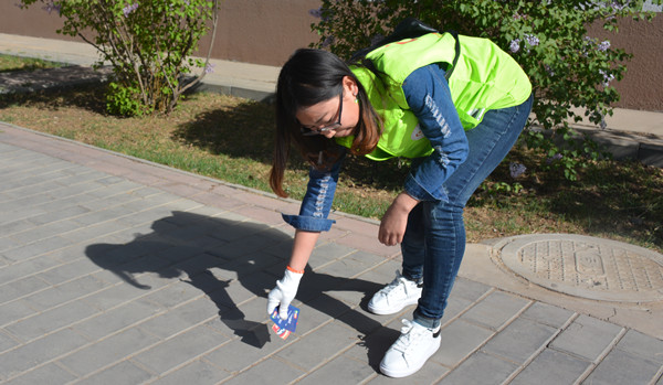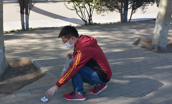 活动中,活动相关负责人对参与的学生说明注意事项,分发清洁工具。并带领各小组在学校周围和校内指定区域进行拾荒,同学们认真工作,拾取校园垃圾数十袋,为美化校园奉献自己的力量。