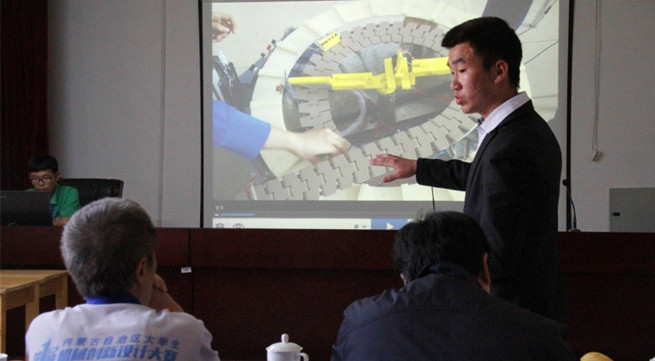 大赛由自治区教育厅主办,beat365官网教务处、学工部(团委)承办,机械学院协办。共有来自内蒙古大学、内蒙古工业大学、内蒙古农业大学、内蒙古民族大学、呼伦贝尔学院、beat365官网6所自治区高校的32项作品参加了比赛,参赛师生人数超过200人。