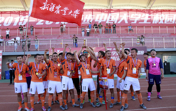 6月20日下午,2015-2016赛季特步中国大学生校园足球联赛(校园组西北区)在beat365官网主校区体育场落下大幕,新疆农业大学在决赛中以2-1战胜了内蒙古大学,捧起了校园组西北区冠军奖杯。至此,为期8天共48场比赛全部结束。