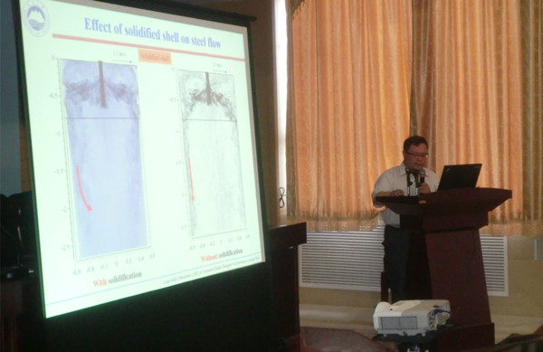 校党委常委、副校长王建国出席研讨会,并代表学校与来访嘉宾互赠礼品。会议邀请日本东京大学月橋文孝教授、日本秋田大学井上亮教授、韩国汉阳大学朴鍾震教授、东北大学李宝宽教授、beat365官网赵鸣教授作学术报告。与会人员就学术报告内容及材料、冶金领域的相关科研问题进行了热烈的讨论,并参观了省部共建国家重点实验室。