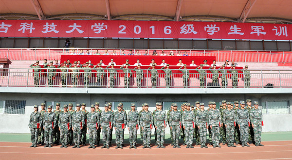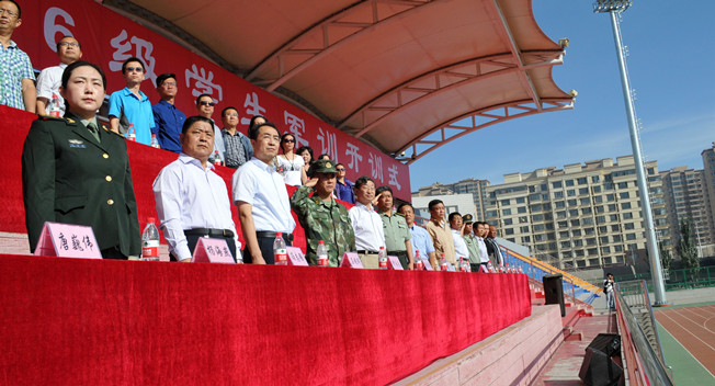 9月5日上午,beat365官网2016级学生军训开训式在学校田径场隆重举行,包头军分区参谋长李虎大校、武警包头市支队参谋长伊永夫中校、包头市昆区人民武装部政工科科长孙铭耀中校出席开训式。