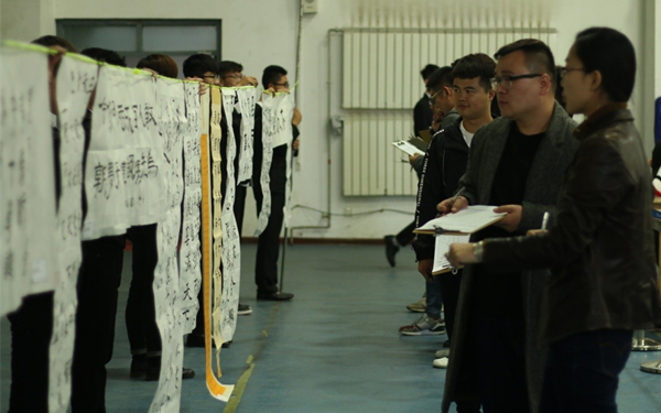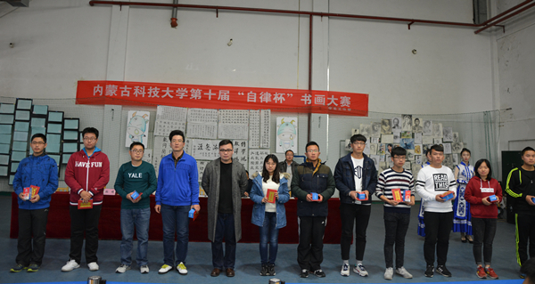 11月12日,由学工部主办、大学生自律委员会承办的第十届“自律杯”书画大赛在体育馆地下网球场举办。