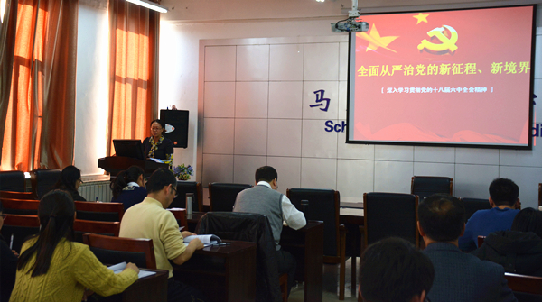 12月15日下午,马克思主义学院召开“深入学习贯彻党的十八届六中全会精神动员暨主题报告会”。校党委常委、副校长杨建林出席会议,马克思主义学院相关负责人、全体师生党员参加学习。