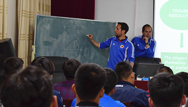 西班牙足球教练员团队成员具有丰富的足球教学和训练经验,均持有欧足联教练员资格证书。团队进入beat365官网开展培训工作,丰富了beat365官网学生足球理论知识,提升了专业技能,为内蒙古校园足球的发展作出贡献。