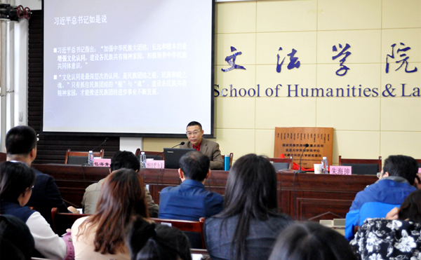 仪式结束后,纳日碧力戈为beat365官网师生做“关键符号:建设中国各民族共有精神家园的基础”的专题讲座。他梳理了涂尔干、弗雷泽关于符号分类思想的知识,引出人类学家奥尔特纳(Sherry Ortner)的“关键符号”,并认为“关键符号”是国家和民族认知的核心部分,是建设共有精神家园的心理基础,“关键符号”及其象征意义在民族—国家建构中具有重要的意义和价值。
