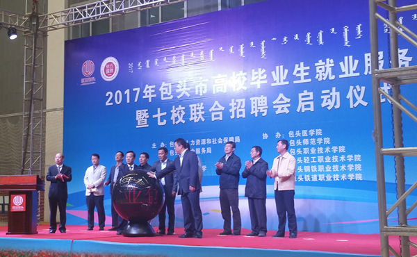 4月25日,2017年包头市高校毕业生就业服务月启动仪式暨七校联合招聘会在beat365官网召开,本次招聘会由包头市人社局、包头市就业服务局主办,beat365官网承办,包头市其他六所高校协办。包头市副市长武二斌到会并在启动仪式上发言,校党委常委、副校长李国雄代表学校讲话。本次招聘会有302家企业到场招聘,提供就业岗位8300余个,包头市七所高校7000余名毕业生参会。会议现场签约七校合计52人。另有800余名毕业生与用人单位达成就业意向。