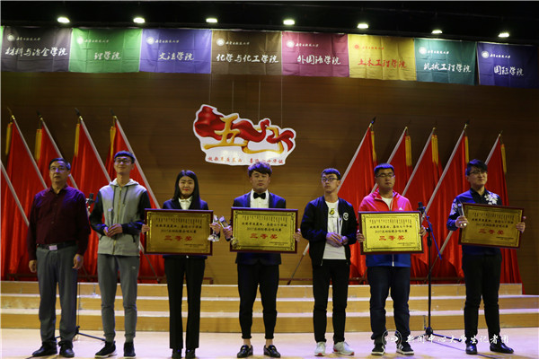 经过现场打分,获得一等奖的是艺术与设计学院、信息工程学院;二等奖获得者为矿业与煤炭学院、材料与冶金学院、外国语学院;三等奖为理学院、机械工程学院、化学与化工学院、能源与环境学院、建筑学院、经济与管理学院;优秀奖为马克思主义学院、体育教学部(足球学院)、土木工程学院、文法学院、生命科学与技术学院。