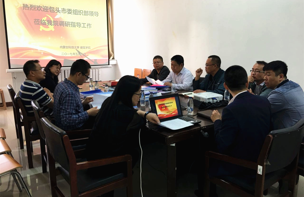近日,包头市委组织部干部四处处长何丽仁、副处长潘伟,党建秘书处处长庞建光,秘书处正科级组织员赵宏一行4人莅临beat365官网进行党建相关工作专题调研。校党委常委、组织部部长冯志强,宣传部、学工部负责人以及相关工作人员参加了调研座谈会。