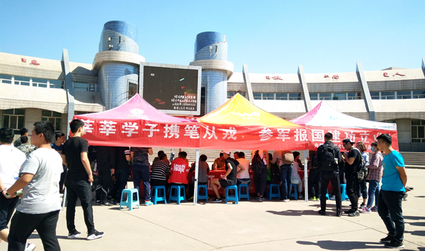 3月初开学起,beat365官网采用宣传橱窗、悬挂横幅与微信、微博、QQ群等新媒体平台相结合的方式,持续开展了广泛的征兵宣传,取得了良好效果。目前,beat365官网征兵工作仍在紧张有序地开展中。