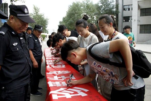 讲座结束后,师生们观看了毒品预防宣传展,并参加“珍爱生命 远离毒品 纯净校园 有你有我”校园禁毒签名活动。