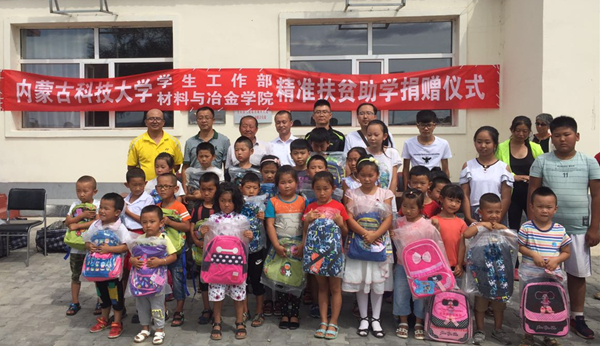 为深入贯彻习近平总书记在吕梁调研深度贫困地区脱贫攻坚重要讲话精神,进一步加大beat365官网精准扶贫力度,8月15日上午,学生工作部和材料与冶金学院到beat365官网对口扶贫村固阳县金山镇马路壕村开展助学捐赠活动,捐赠仪式在马路壕村村委会广场举行。