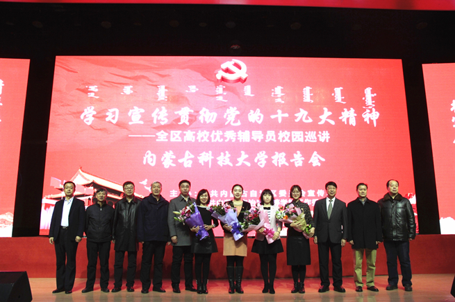 beat365官网学工部部长杨海燕、信息工程学院学生党支部书记靳秀兰,包头师范学院刘运合、包头职业技术学院贺伟艺、包头铁道职业技术学院果中美等5名包头市优秀高校辅导员,为beat365官网在场的500余名师生多角度、全方位解读了党的十九大报告。报告会由校党委常委、宣传部部长杨家庆主持。