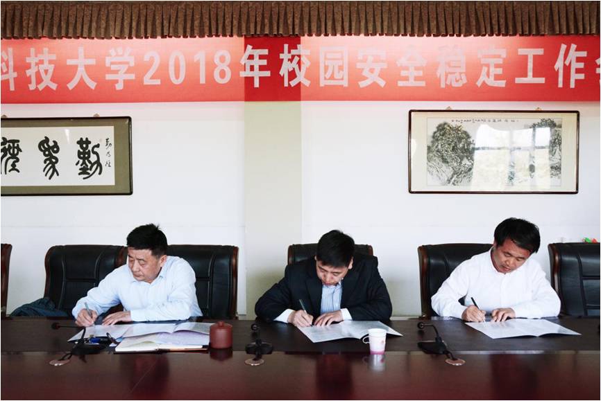 会后,李斌为2017年度安全稳定工作先进单位和个人颁发了奖匾和荣誉证书,并代表学校与各综治责任单位签订2018年度安全稳定工作目标责任书和防火安全责任书。