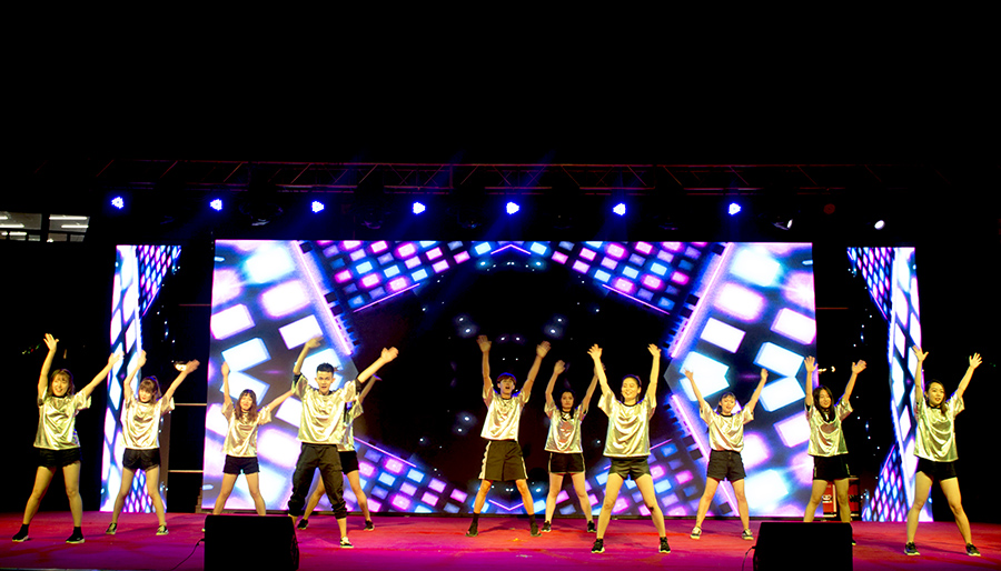 晚会以校学生会舞蹈队带来的开场舞《共筑中国梦,同展盛世情》拉开帷幕。