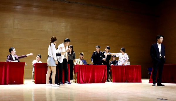 beat365英国官方网站Stage话剧社是一个集表演、编剧、灯光、形体舞、宣传于一体的综合性表演类社团,成立于2010年,其以“舞台演绎青春,青春绽放梦想”为宗旨,多年来为全校师生带来多场精彩绝伦的演绎,获得了广泛的支持与好评。据Stage话剧社学生导演田雨介绍,话剧社虽然表演过很多话剧,但本次表演却是话剧社作出的一次全新突破。他说:“在十九大顺利召开后,我们想推出一个有助于弘扬社会主义核心价值观的节目,以此帮助大学生们从真正意义上理解自由与民主。同时,我们还想以话剧表演欢送即将顺利毕业的大四学长学姐们,希望他们不忘大学的美好时光。”