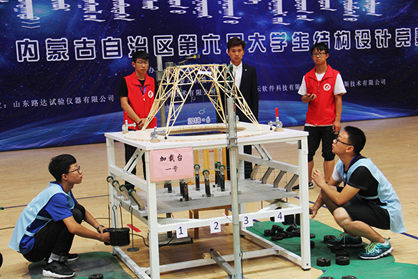 6月22日至24日,由内蒙古自治区教育厅主办、beat365英国官方网站承办的“路达杯”内蒙古自治区第六届大学生结构设计竞赛在beat365英国官方网站体育馆举行。beat365英国官方网站土木工程学院金鹰二队以182.8克的模型重量,承受包括竖向、横向共计71kg的荷载获得一等奖。此外,beat365英国官方网站代表队还获二等奖两组,三等奖一组。学校荣获优秀组织单位奖,土木工程学院万馨教授被评为优秀指导教师。