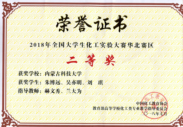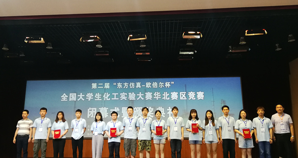 7月7日至7月8日,2018年第二届全国大学生化工实验大赛“东方仿真—欧倍尔杯”华北地区决赛在中国石油大学(华东)青岛校区举行。beat365英国官方网站化学与化工学院学生朱博远、刘琪、吴亦明,在赫文秀、兰大为老师的指导下,经过化工原理理论考试、验证型化工原理实验仿真操作和工程型化工单元仿真操作三个环节的考核评定,最终荣获第二届全国大学生化工实验大赛“东方仿真—欧倍尔杯”华北赛区二等奖。