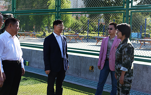 走进训练场,安胜利和冯志强亲切询问新生们的军训情况,与辅导员、教官代表一一握手,并在服务站查看了药品箱等应急措施准备状况,对服务人员的辛勤无私的付出表示感谢。部分学院辅导员汇报了学生训练情况、活动开展状况、请假管理及宣传报道的具体情况,并对学校领导的关心表示感谢。
