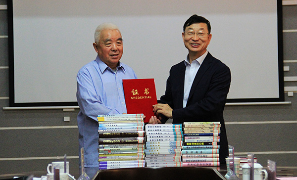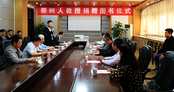 赠书仪式上,那树人分别向图书馆及材料与冶金学院赠送了《专业炼铁学》及个人著作《炼铁计算辨析》、《诗绪·诗记》等文献资料共计300余册。