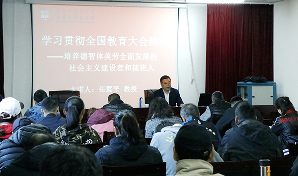 10月9日上午,校党委常委、副校长任慧平教授到体育教学部(足球学院)宣讲全国教育大会精神。讲座传达学习了全国教育大会特别是习近平总书记重要讲话精神,及如何培养德智体美劳全面发展的社会主义建设者和接班人等内容。