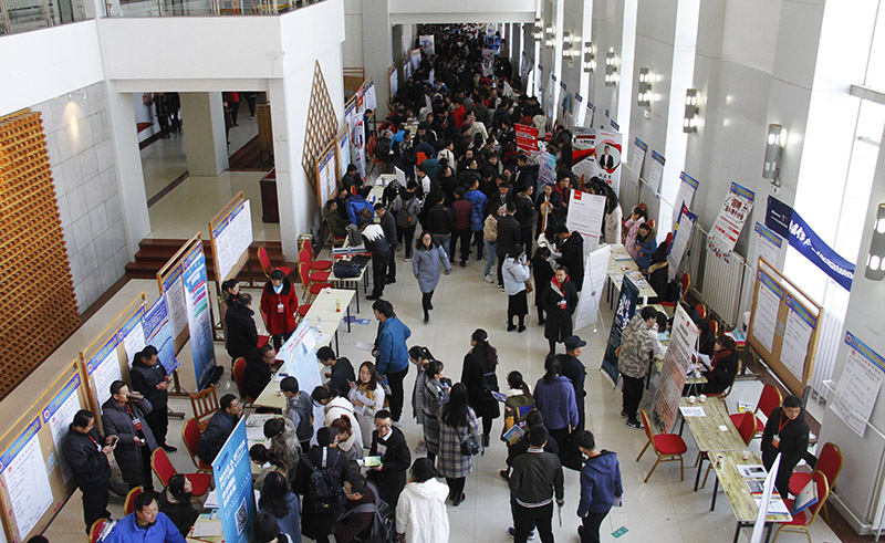 据招生就业处相关负责人介绍,本次招聘会与往年相比呈现出招聘企业种类更加多元化的特点,除煤炭、钢铁、中建、中冶等近百家大型企业外,还包含了互联网、金融、家装、食品、教育培训、管理咨询等其他公司。