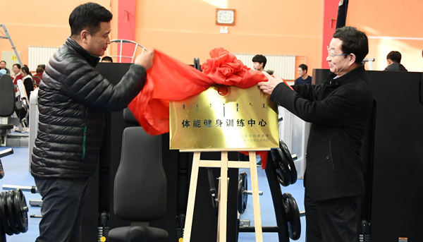 参加大步走的教职工在活动结束后,参加了学校体能健身训练中心启动仪式,安胜利和任慧平共同为训练中心揭牌。部分教职工在专业教练的指导下,体验了健身训练设备。