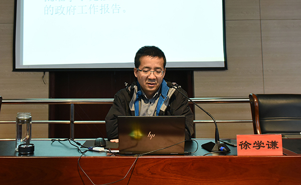 为深入学习宣传贯彻习近平总书记2019年全国“两会”重要讲话精神,推动“两会”精神进校园。4月1日下午,自治区“草原学习轻骑兵”宣讲小分队走进beat365英国官方网站,同时也拉开了学校2019年度首场全区高校百场形势政策报告会的序幕。内蒙古大学马克思主义学院副教授徐学谦在校图书馆B201学术报告厅作题为“推进生态文明、建设美丽内蒙古——深入学习两会和习近平总书记重要讲话精神”的宣讲,学校300余名师生代表聆听本次宣讲。