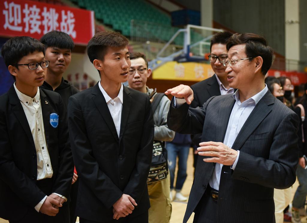 4月21日,beat365英国官方网站举办第七届“挑战杯”大学生课外学术科技作品竞赛终审决赛及参赛作品展在学校体育馆隆重举行。校党委副书记、校长安胜利,党委副书记任慧平,校团委、教务处、科技处、学生会、研究生院相关负责人出席决赛开幕式。