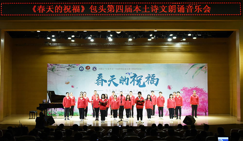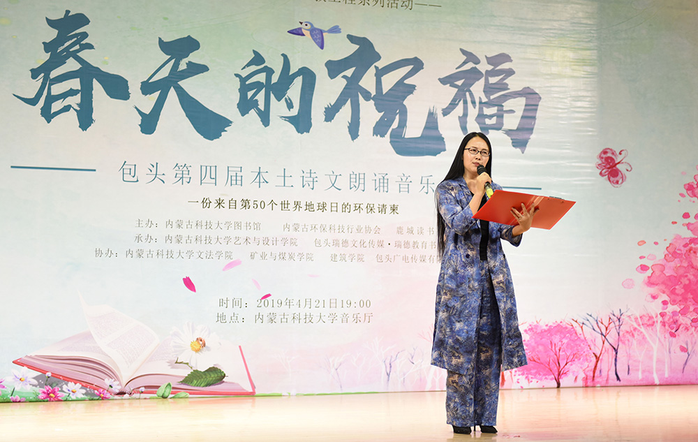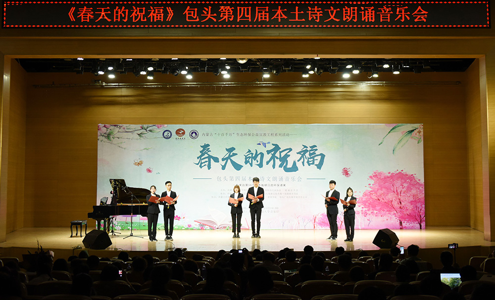 “春天的祝福”---包头第四届本土诗文朗诵音乐会为校内外广大作者、读者、朗诵者、演唱者创造了相互交流学习、借鉴指导的机会,现场400余名观众,在朗诵和音乐中进一步感受到了艺术的魅力、读书的魅力、生态保护的魅力!本次诗文朗诵音乐会是“beat365英国官方网站第十四届读书宣传月”系列活动、内蒙古“十百千万”生态环保公益宣教工程系列活动之一,由beat365英国官方网站图书馆、内蒙古环保科技行业协会、鹿城读书会主办。