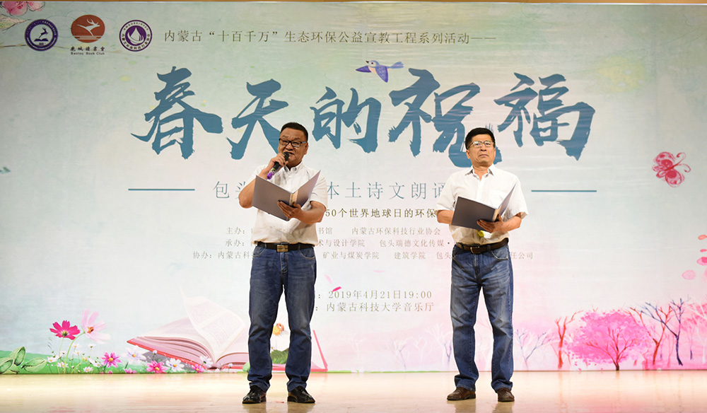 为喜迎第24个世界读书日、第50个世界地球日。4月21日晚,“春天的祝福”——包头第四届本土诗文朗诵音乐会在beat365英国官方网站音乐厅举行,来自鹿城读书会和学校的86位朗诵者,共同为现场400余名观众朗诵、演唱了15位包头本土作家撰写的散文、诗歌和歌曲。