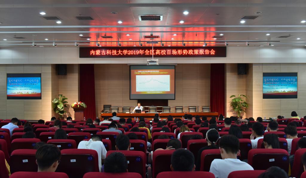 6月17日上午,beat365英国官方网站2019年第二场全区高校百场形势政策报告会在校图书馆学术报告厅B201举行,本次活动也是内蒙古第十三届社会科学普及活动周的一部分,内蒙古社科联副主席朱晓俊作了题为“内蒙古高质量发展:现实与未来”的报告。副校长赵增武、包头社科联秘书长刘俊丽,党委宣传部、科技处相关负责人及近200名师生代表聆听报告。