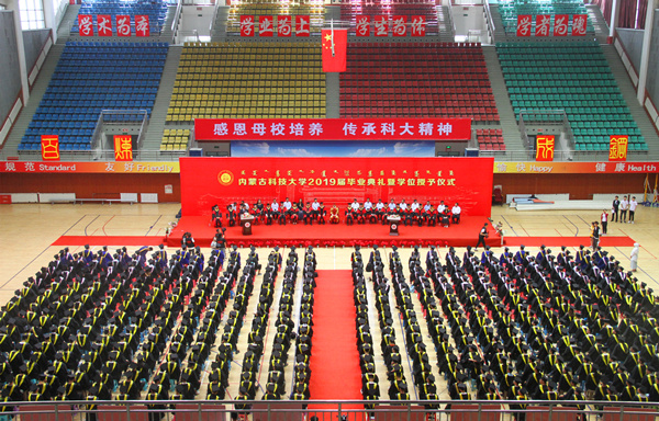 6月28日上午,学校2019届毕业典礼暨学位授予仪式在校体育馆举行。校党委副书记、校长安胜利,副校长李斌、冯志强、赵增武,党委委员、宣传部部长杨家庆,党委委员、党政办公室主任田立志,党委委员、教务处处长赵永旺,学工部、团委、研究生院、招生就业处、保卫处、各学院相关负责人,2019届毕业生代表参加典礼。副校长冯志强主持典礼。