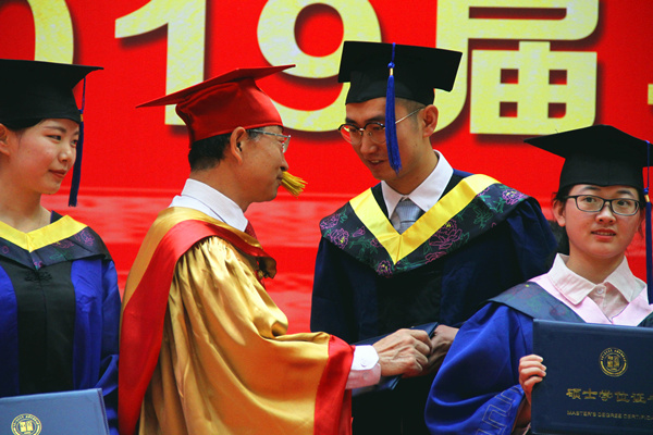 安胜利和其他主礼教授、嘉宾为毕业生颁发学位证书,拨穗正冠,在场师生们共同见证了这一温暖而庄重的时刻。