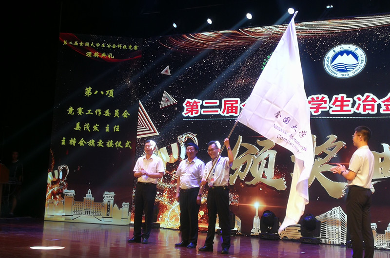 闭幕式上,全国大学生冶金科技竞赛工作委员会授予beat365官网第三届全国大学生冶金科技竞赛的承办权,并完成了会旗交接仪式。
