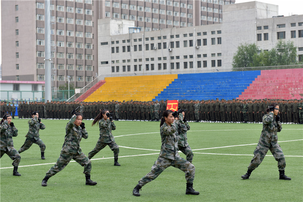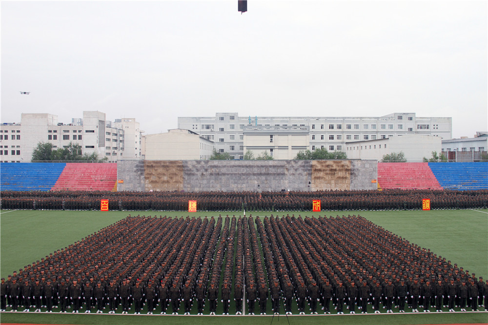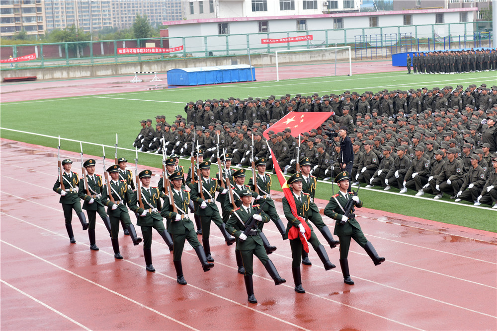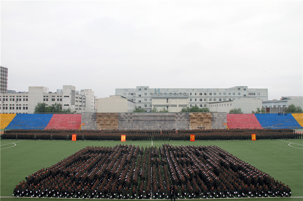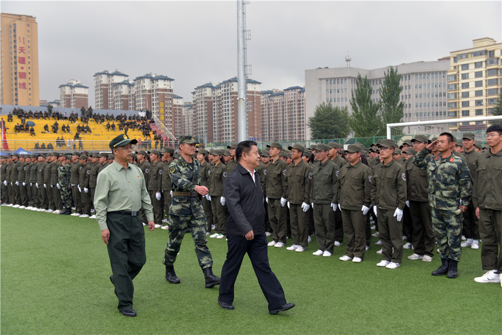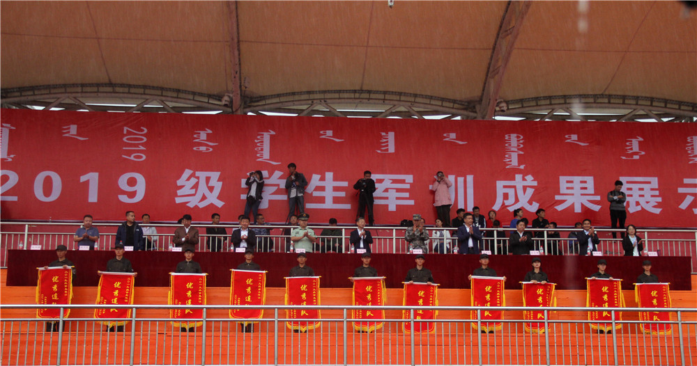 9月11日下午4时30分,beat365英国官方网站在校田径场举行2019级学生军训成果展示暨总结表彰大会。5800余名新生结束了为期两周的军训生活。包头军分区战备建设处处长张润彪上校、武警包头支队政治工作处主任夏志刚中校,校党政领导安胜利、任慧平、李斌、冯志强,党委委员、宣传部部长杨家庆,党委委员、教务处处长赵永旺,学生工作部、团委、招生就业处、保卫处等部门,各学院相关负责人出席了大会。