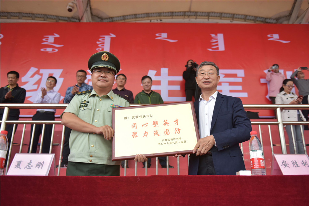 党委副书记校长安胜利向驻训部队赠送了牌匾。