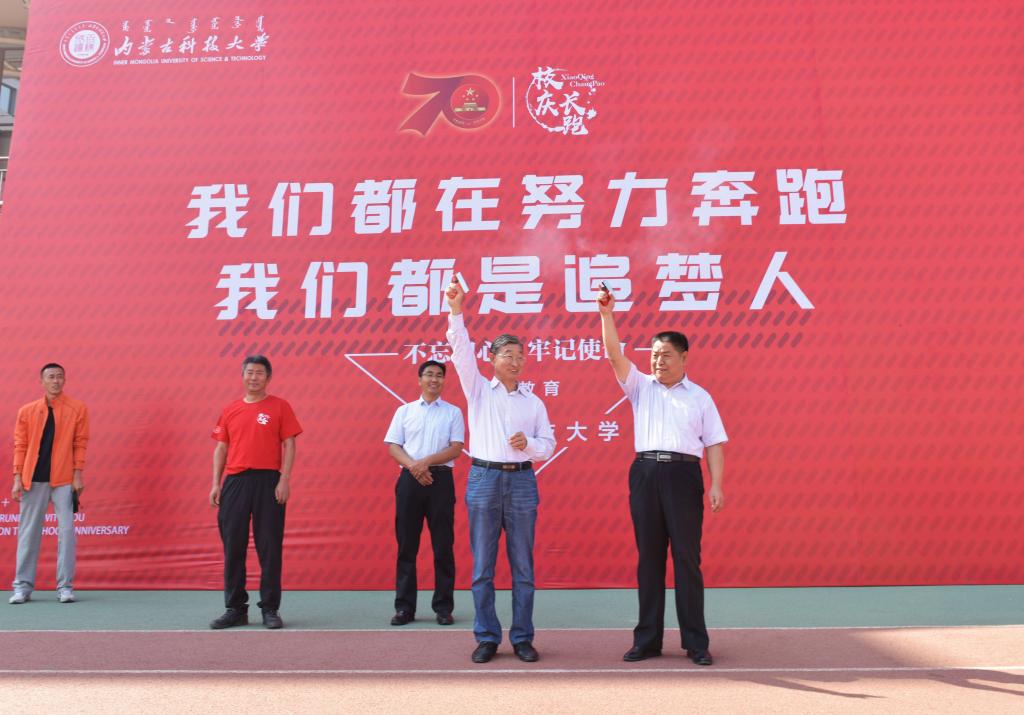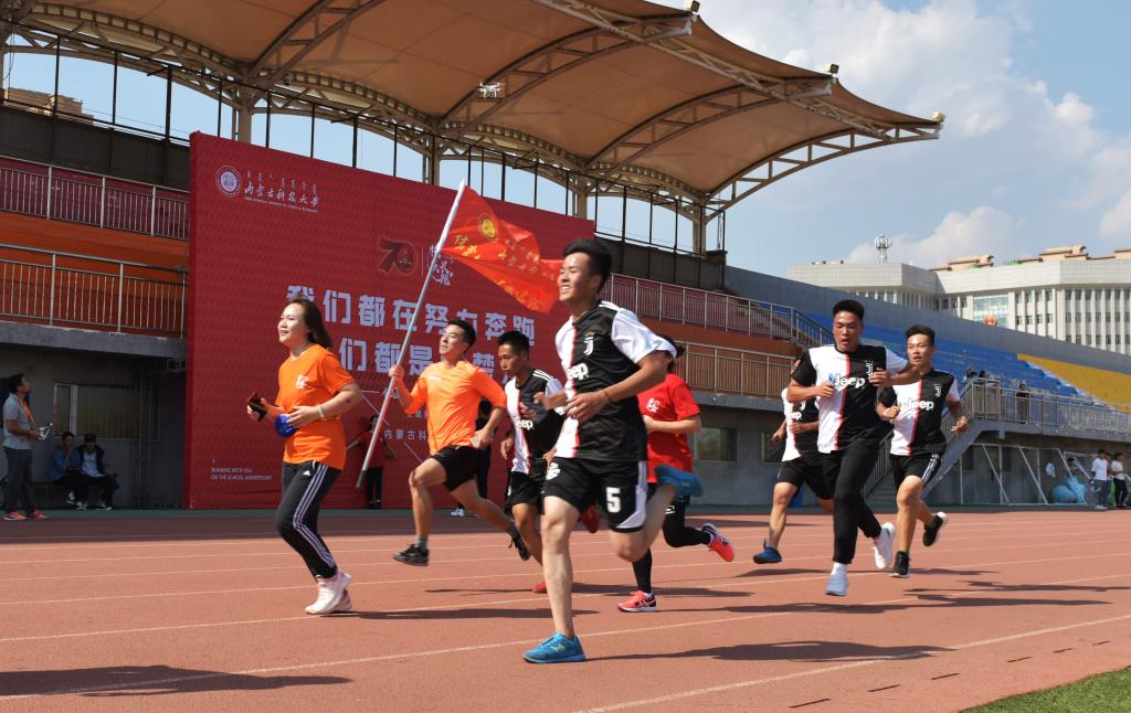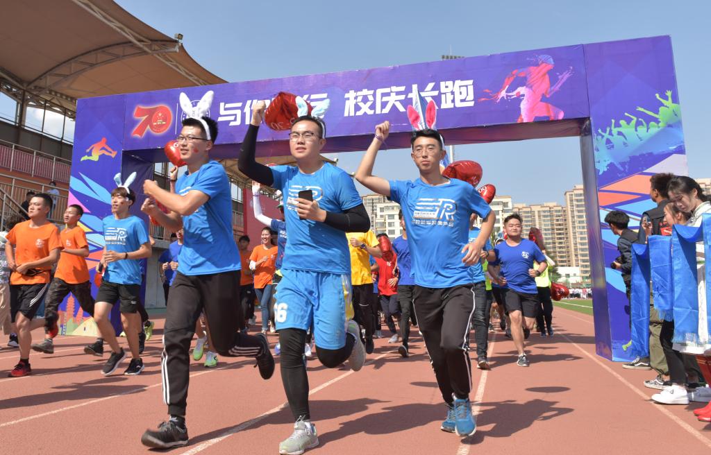 为庆祝中华人民共和国成立70周年,beat365英国官方网站成立63周年,9月26日下午,beat365英国官方网站“校庆长跑”活动在田径场隆重举行。