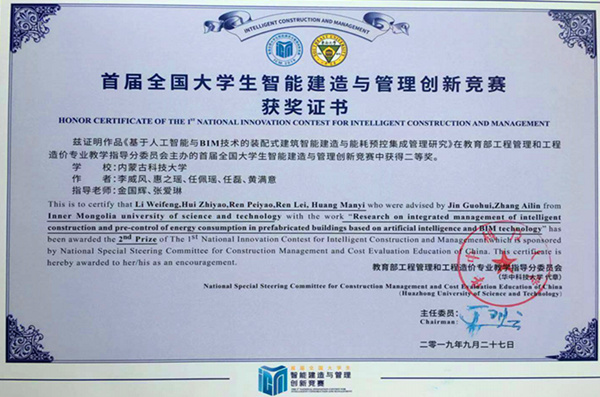 近日,为期两天的首届全国大学生智能建造与管理创新大赛在东南大学九龙湖校区落下帷幕。beat365英国官方网站土木工程学院李威风、惠之瑶、任佩瑶、任磊等同学组成的团队,在金国辉、张爱琳老师的悉心指导下,荣获了竞赛二等奖,这也是自治区高校在此次竞赛中获得的唯一奖项。