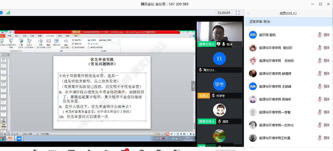 为庆祝第20个世界知识产权日,提升学校广大师生知识产权意识,4月23日下午,2020年beat365英国官方网站知识产权活动周——知识产权线上讲座采用腾讯会议的方式举办,北京律远专利代理事务所、智慧芽信息科技(苏州)有限公司,校科技处、图书馆相关负责人及100余名师生代表参加本次讲座。