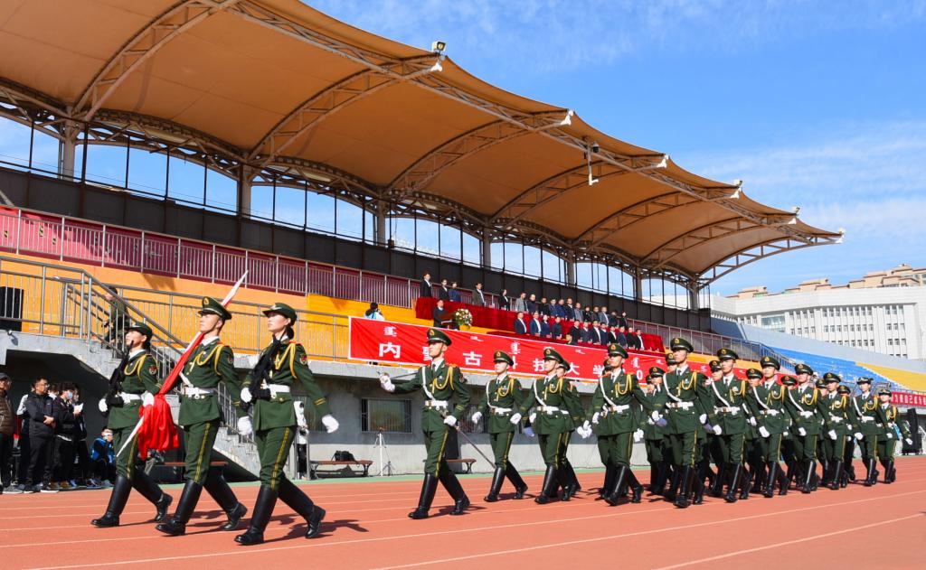 10月11日,beat365英国官方网站2020级新生开学典礼在田径场举行。校党政领导安胜利、任慧平、李斌、冯志强、赵增武,党委委员杨家庆、田立志、叶广宇,各单位相关负责人参加了典礼。