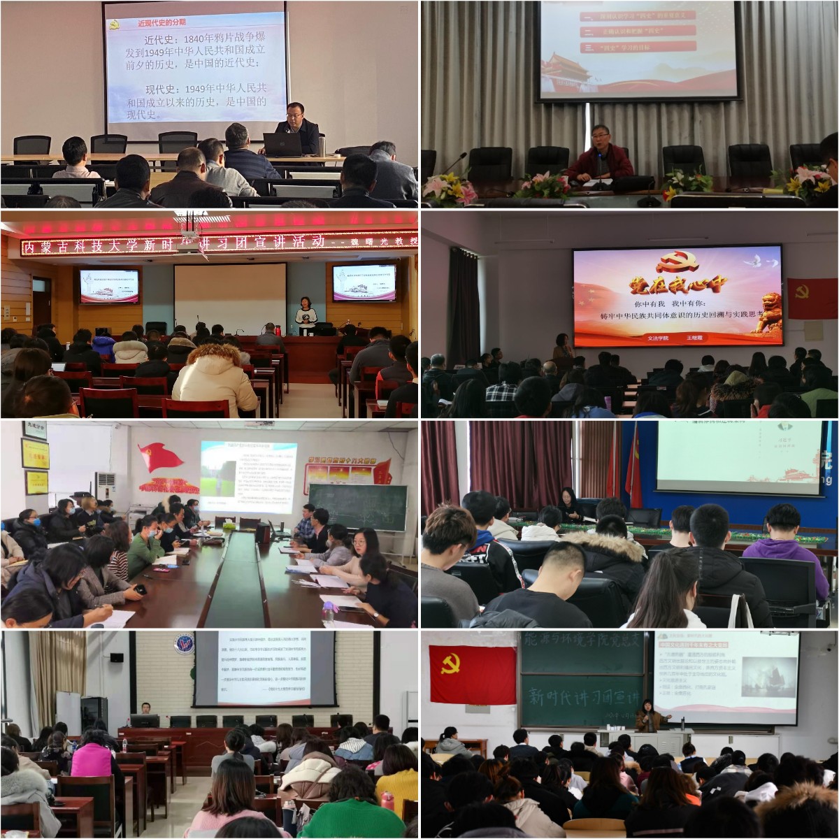 新时代讲习团成员、马克思主义学院党总支书记刘玉明为理学院全体教职工介绍了中国共产党百年历程的苦难与辉煌,对学习认识中国共产党百年历程有重要指导作用。新时代讲习团成员于海平教授以“加强‘四史’学习,牢记‘立德树人’”为主题,在工程训练中心党总支与在场的党员与积极分子进行了现场交流,分享学习心得。新时代讲习团成员魏曙光教授围绕十九届五中全会关于十四五规划的经济目标入手,为工业技术研究院、矿业研究院、国际学院和研究生院的党员教师进行宣讲,让广大教师进一步加深了对党的十九届五中全会精神的认识。新时代讲习团成员王继霞教授通过对“铸牢中华民族共同体意识”的认识讲解,拓宽了建筑学院师生的理论视野。新时代讲习团成员杨彦斌教授为生命科学与技术学院为全体教职工开展了题为《中国共产党的百年历程和基本经验》的宣讲讲座。新时代讲习团成员金海斌老师从《习近平谈治国理政》(第三卷)的“编辑体例和逻辑架构、时代背景和实践基础、重大意义和历史印证、思想风范和精髓要义”等四个方面为机械工程学院的学生党员进行了深刻细致的解读。新时代讲习团成员王雅荣教授、弓宇峰老师分别以读懂抗疫大考的中国答卷、习近平总书记关于全面依法治国的论述为主题,为机关党总支广大党员教师进行了宣讲。新时代讲习团成员冯大彪围绕铸牢中华民族共同体意识为核心,为外国语学院广大教师进行了宣讲。新时代讲习团成员夏承伯老师以当代青年的使命与担当,为艺术与设计学院学生一支部党员、积极分子进行了宣讲。新时代讲习团成员孟曦老师以坚定文化自信,建设社会主义文化强国为主题,为能源与环境学院全体党员学生进行宣讲,引导学生党员在文化自觉中坚定文化自信,进一步涵养社会主义核心价值观。