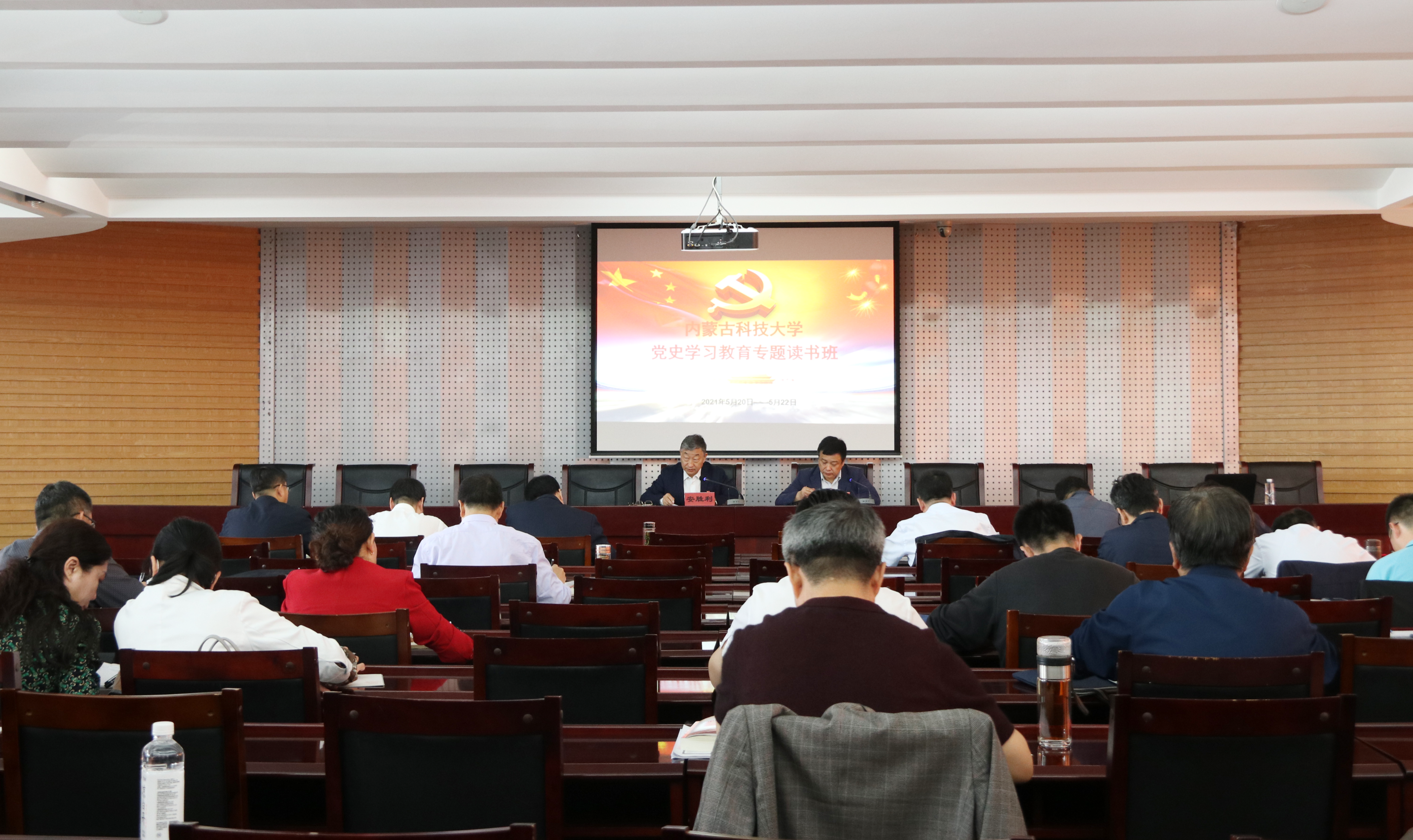 校党政领导安胜利、任慧平、李斌、赵增武、檀宝文,党委委员杨家庆、田立志、赵永旺,全校副处级以上干部参加了读书班学习。开班仪式由党委副书记、校长任慧平主持。校党委书记安胜利作重要讲话。