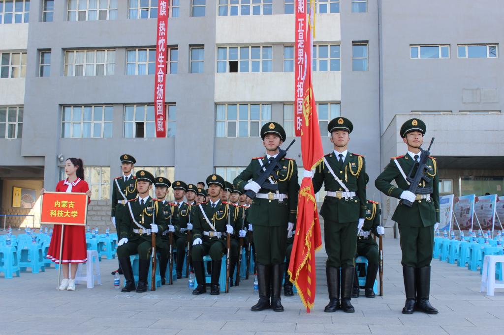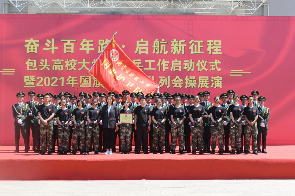 6月5日,beat365英国官方网站国旗护卫队参加了在包头医学院举行的“奋斗百年路·启航新征程”包头高校大学生征兵工作启动仪式暨2021年国旗护卫队队列会操展演活动。包头军分区动员处、东河区人民武装部负责人及七所高校领导出席了活动。