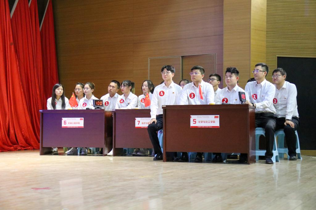 经过线上初赛的选拔,土木工程学院、经济与管理学院、矿业与煤炭学院、外国语学院、生命科学与技术学院、机械工程学院、能源与环境学院、化学与化工学院8个学院闯进决赛。决赛内容分为个人必答题、团队抢答题、风险题、电影抢答题、革命歌曲抢答题、看图抢答题6项,各队选手精神饱满、沉着应对、有条不紊地答题。在团队抢答环节,选手们反应迅速、对答如流,赢得观众的阵阵掌声,比分随各队选手作答情况时有变换、分数紧咬,比赛结果扣人心弦。