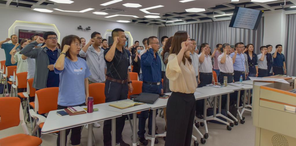 开班仪式上新教师进行了入职宣誓,全体教师重温了入职誓言。