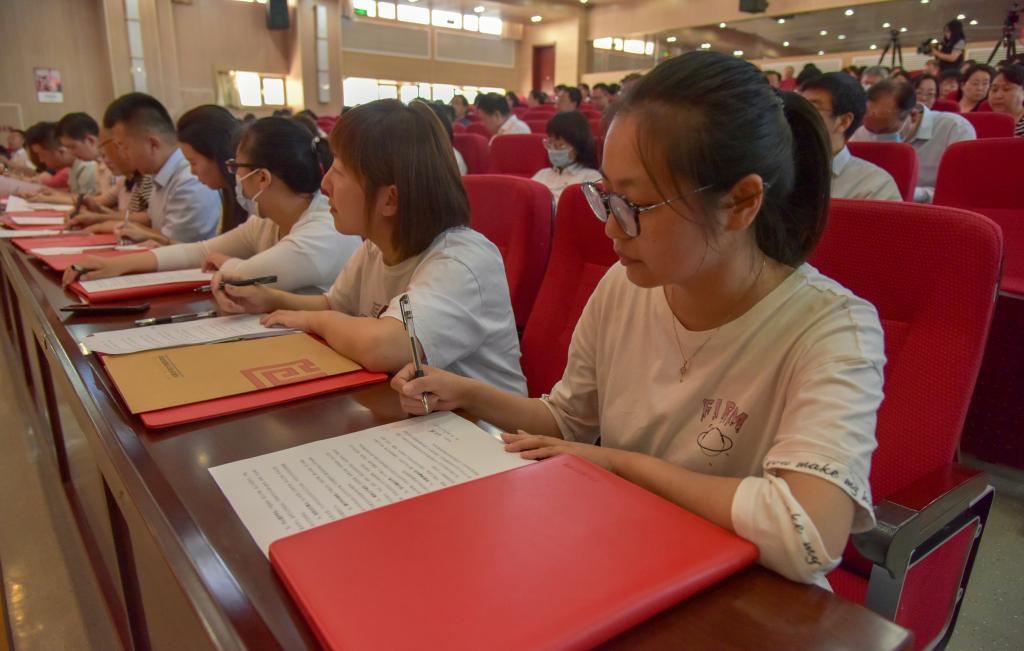 现场全体教师共同签订《beat365英国官方网站教师师德承诺书》