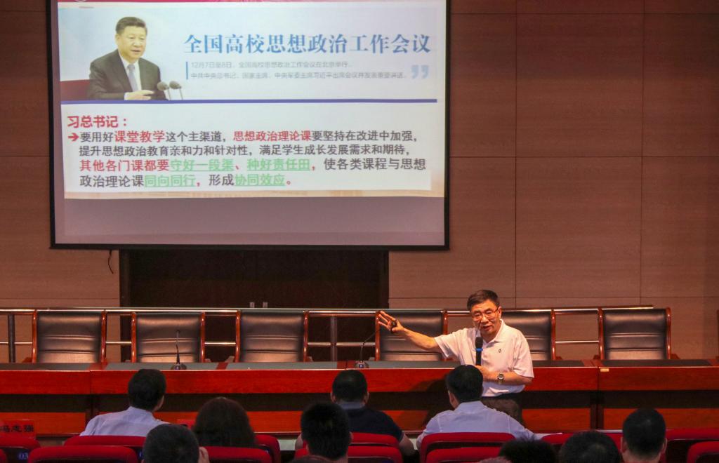 本次大会特邀上海大学力学与工程学学院教授叶志明作《让课程思政“活”起来——学科或专业类课程思政之实践》专题讲座,讲座中叶志明教授用自己的教学理念,帮助老师们加深了对课程思政的理解,从而更好地将课程思政与课堂教学融为一体。