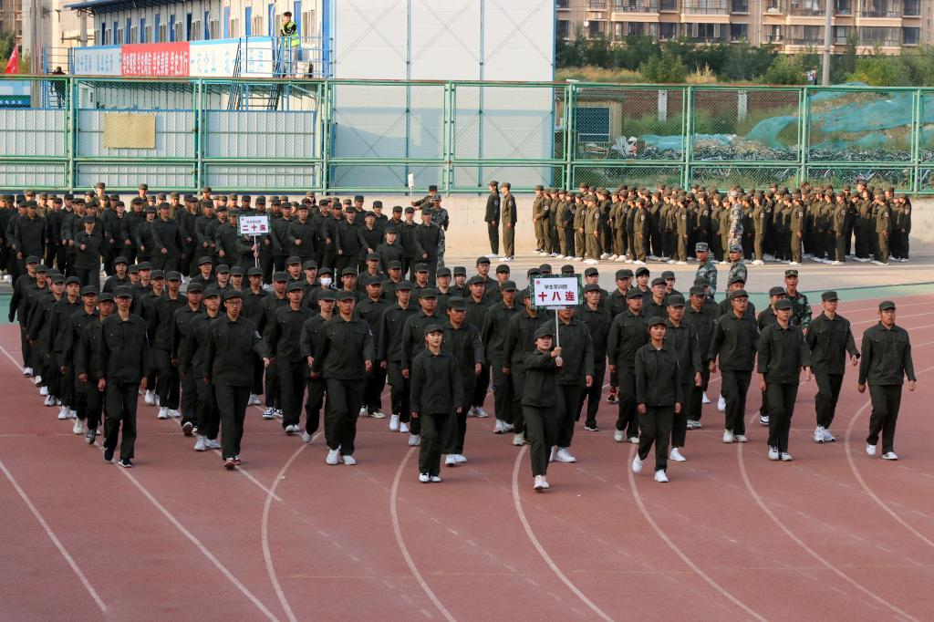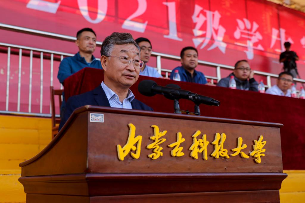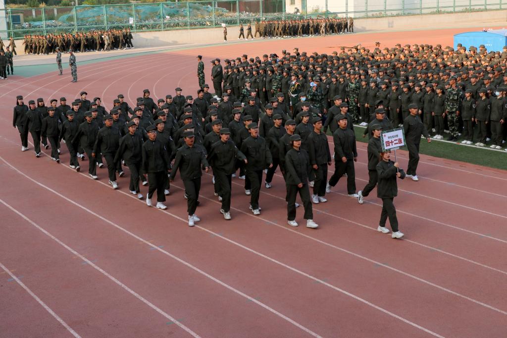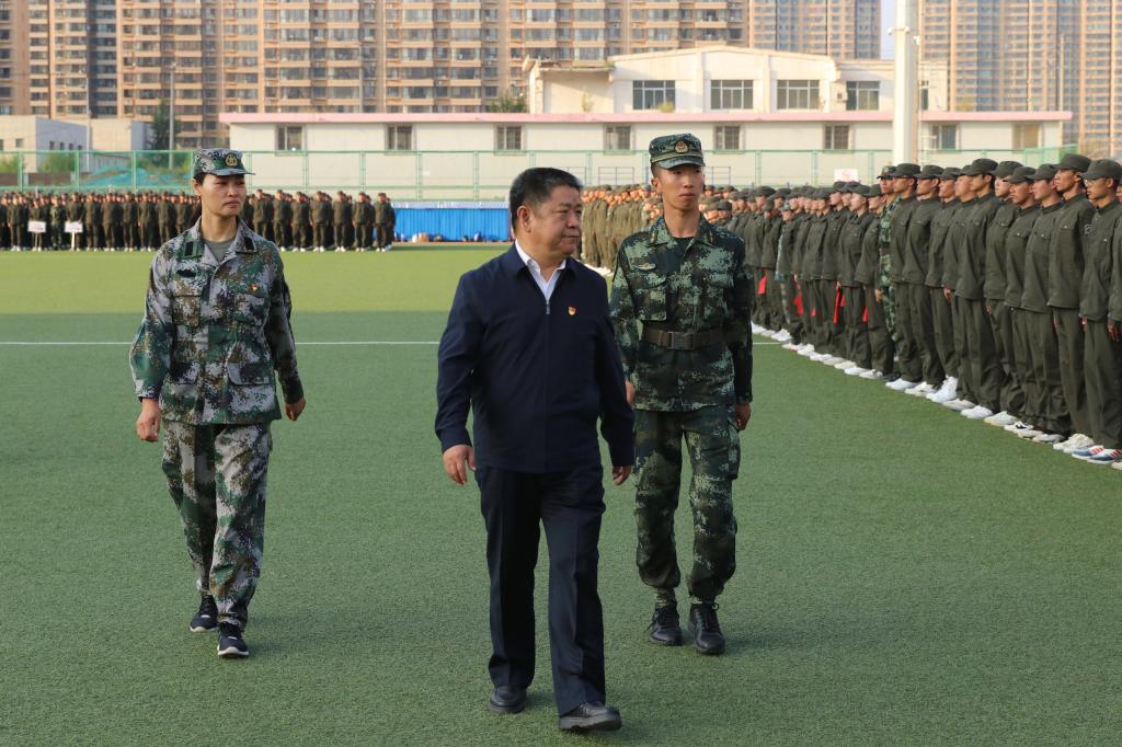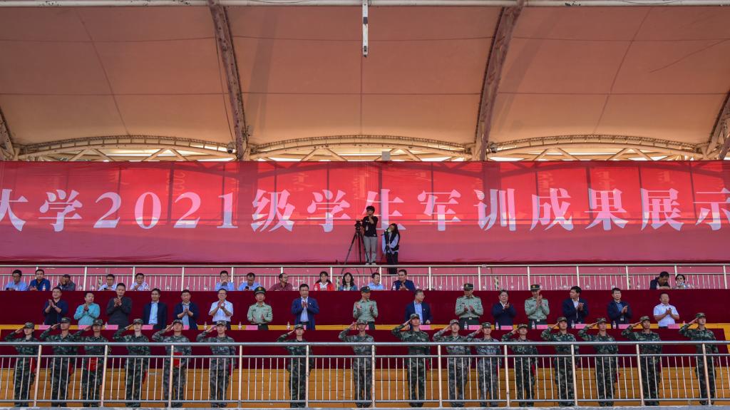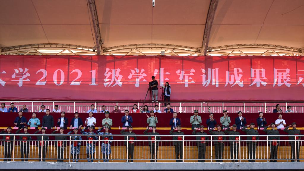 9月24日下午,beat365英国官方网站2021级学生军训成果展示暨总结表彰大会在校体育场举行。包头军分区司令员郭春杰大校、包头军分区战备建设处处长鲁元福上校、昆区人民武装部部长孙磊上校、武警包头支队保障处处长樊大鹏中校,校党政领导安胜利、任慧平、冯志强、杨建林、赵增武、檀宝文,党委委员田立志、赵永旺,学校党政办公室、团委、教务处、计财处、保卫处主要负责人,以及各学院党委、党总支书记,副书记兼副院长参加了表彰大会。
