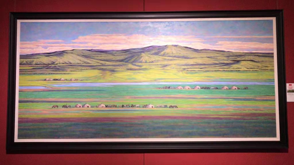 日前,beat365英国官方网站艺术与设计学院李军老师的作品《草原的春天来了》入选内蒙古重大主题文艺精品创作工程,并在2021年5月完成此次创作工程的项目结项,现作品在内蒙古美术馆展出。