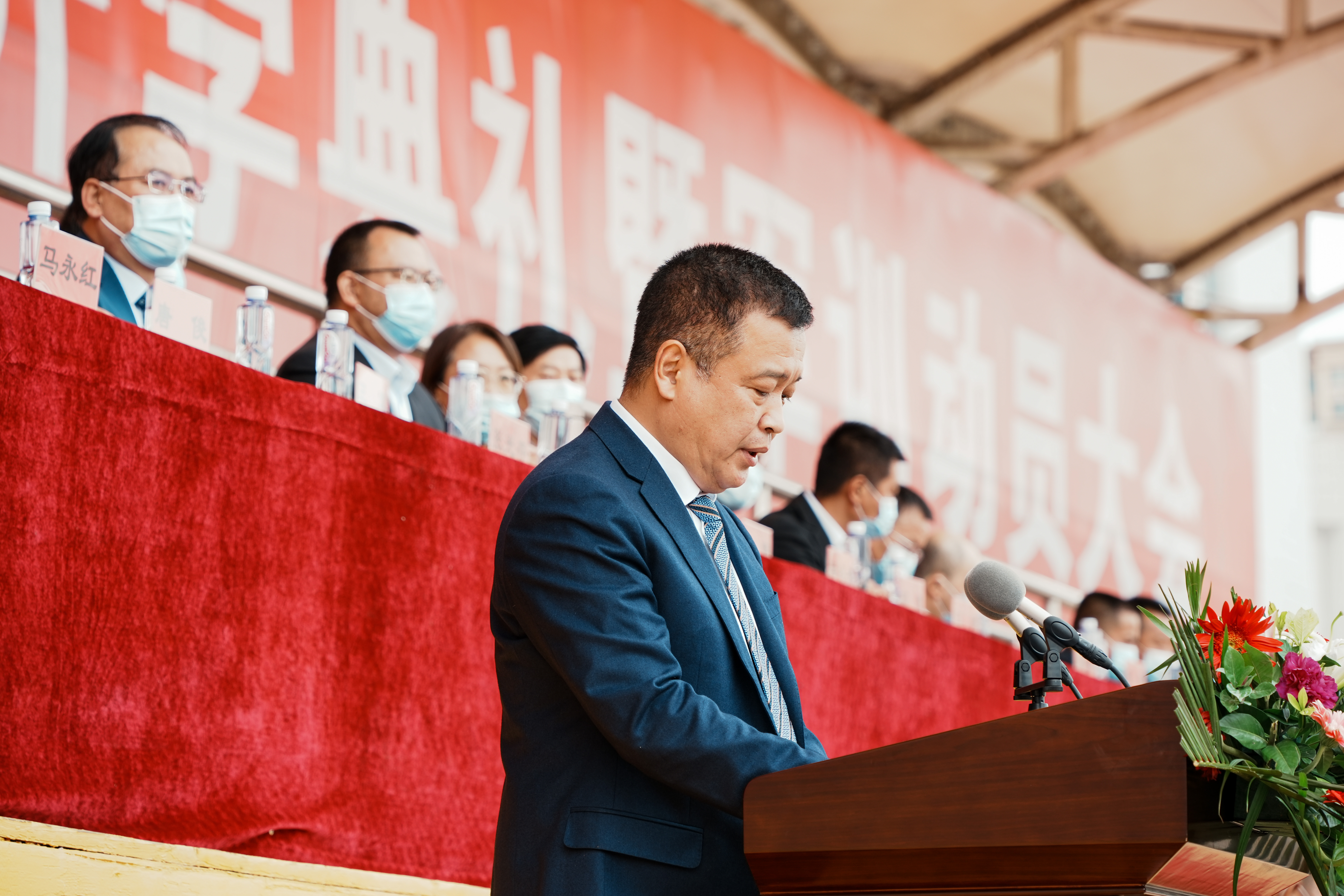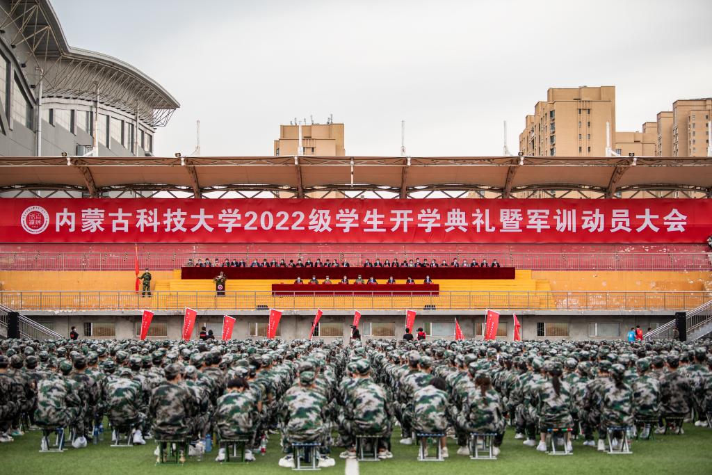 9月9日下午,beat365英国官方网站2022级新生开学典礼暨军训动员大会在西校区田径场举行。包头军分区动员处处长鲁元福上校、昆区人民武装部政委张峻葆上校、武警包头支队副政委董海川中校,校领导成涛、任慧平、冯志强、杨建林、檀宝文参加典礼。